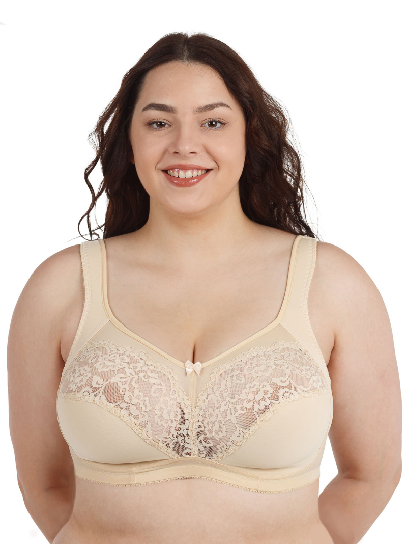 Классический бюстгальтер - минимайзер для повседневной носки, комбинированная мягкая чашка с хлопковой подкладкой и боковым усилителем из поролона с хлопком, усилитель переходит в широкую бретель, чашка без каркасов.